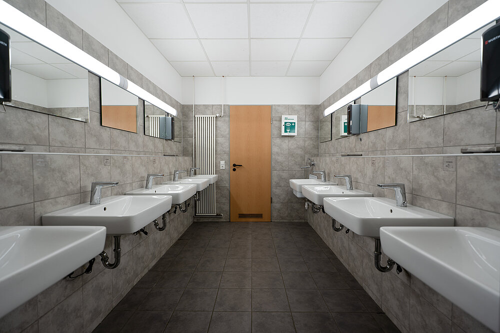 Der Campus teilt sich in drei Teile auf: die Fertigung, das Verwaltungsgebäude und das Kompetenzzentrum. In der Fertigung werden unsere Elemente produziert und für den Versand oder Veredelung vorbereitet. Im Verwaltungsgebäude sind die kaufmännischen und technischen Abteilungen zu finden. Der dritte Bereich, das Kompetenzzentrum, dient als Informationszentrum für unsere Kunden und als Testzentrum für unsere Forschung und Entwicklung. Hier veranstalten wir Events, führen Mitarbeiterversammlungen durch und testen unsere Produkte gegen Druckwellen und schwere Einbruchsversuche.