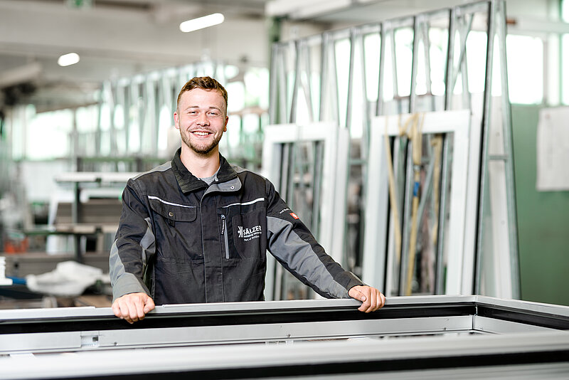 SÄLZER habe ich bereits in meinen Praktika in meiner Schulzeit kennengelernt und im Anschluss meine Ausbildung begonnen. Die Produkte machen meine Arbeit in der Fertigung abwechslungsreich und interessant. Ich baue hier Hochsicherheitselemente und keine gewöhnlichen Fenster oder Türen. Genau deswegen habe ich mich für SÄLZER entschieden.